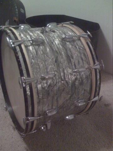 I just found a nice pair of 1959/60 Slingerland drums in light blue pearl. I have a 22" bass drum and a matching Hollywood Ace snare. Does anyone have a nice 13" mounted tom and/or 16" floor tom for sale? I have attached a few pictures. I am looking for an exact match in nice shape. Thanks!