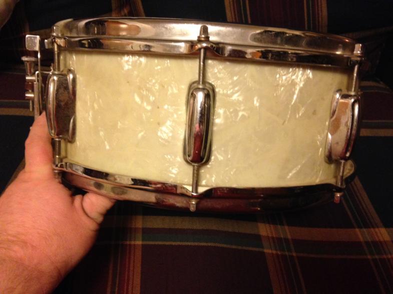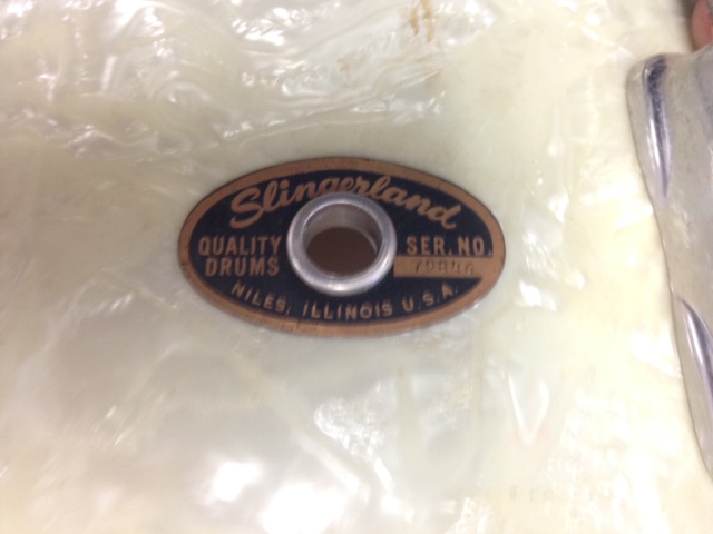 Hi, I'm new to the boards but been playing music for years. I've got a question about this old snare I picked up recently. Its a Slingerland, can't remember the serial # exactly but I know its around 79,xxx. I'm trying to figure out the model of it. Its in nice shape and the Marine Pearl wrap isn't too yellowed, its a nice sounding snare. Its got 8 lugs and stick saver hoops. Thanks in advance for your help!