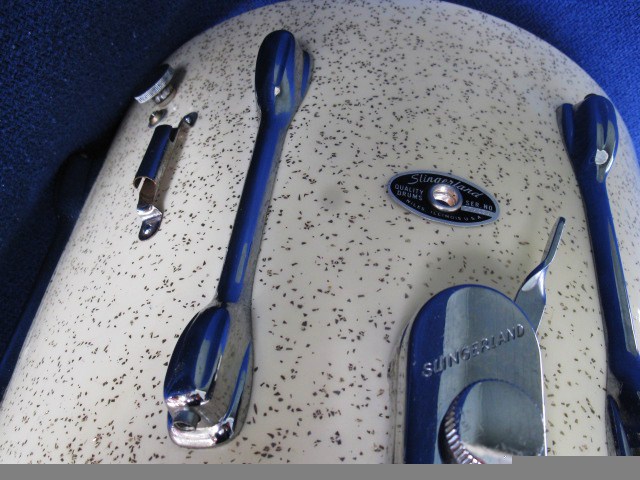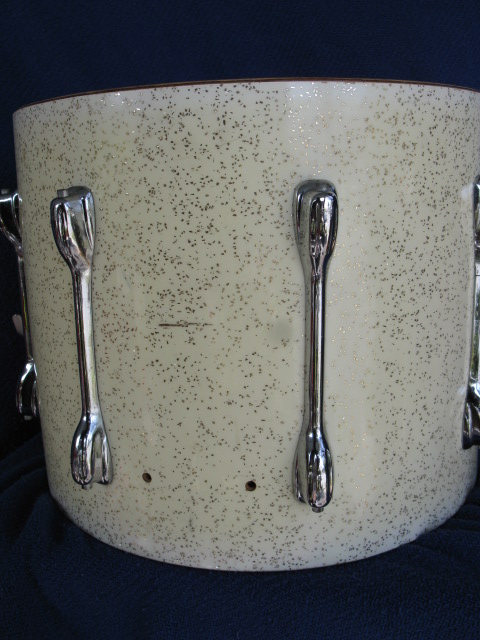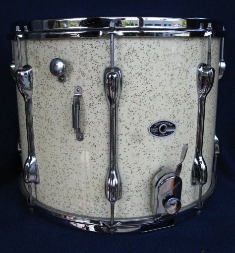 Slingerland Snare, 12X15 Sparkling White Pearl, c.1973, blk/slvr Niles badge #174236. Exc - cond. Wrap is vivid, w/ good seam. Zoomatic strainer. Has 2 small holes for marching bracket. Natural Maple interior w/ maple reinforcement rings. Has original strainer, hoops& muffler. 8 long tension lugs. Would make an excellent snare, tom or floor tom. $325. Shipping to USA by USPS Parcel Post $25, or local pick up. Overseas buyers contact seller for shipping.