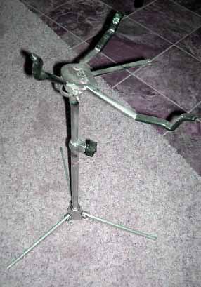 So, I'm starting to clean the downstairs closet where I store most of my extra drums and parts (at the strong urging of my wife) :) and came across this Slingerland snare stand that has three (what look like aluminum) legs, no rubber tips. The legs look like they are held in place by original rivets, so I'm figuring they are somehow original to the stand.