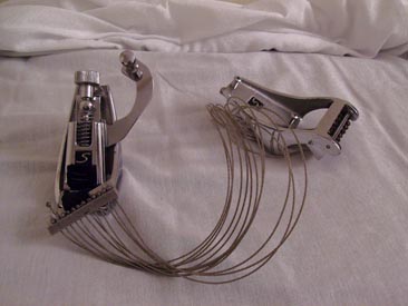 For sale is (1) complete Slingerland TDR strainer system, throwoff & butt end with cable wire set. 100% functional, chrome is excellent other than two wear spots on sides of butt plate extensions -- scratched through plating. Still presentable, and I have NOS butt plates available. Throwoff is smooth, rubber bumper/spacer is missing. Adjustable wire cable snares are intact but very curled...may straighten under tension but might need to be replaced. Throwoff end has mounting screws and bolts, butt end has screws and back strap. A somewhat rare strainer, ready for action. Asking $45 shipped in USA or Best Offer, Canada extra. PM or e-mail if interested.