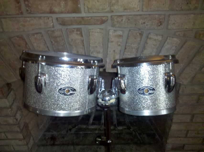 Just got the toms! They're in pretty good condition. Really minor pitting here and there on the stand. A little bit of cleaning and a new red Slingerland sticker for the stand and they'll look like new. The silver sparkle doesn't match the champagne sparkle I have, but close enough for me. I'm going to leave them alone for now and possibly rewrap them if I want to keep them in the long run. First I have to see how well they'll fit with my set and playing.