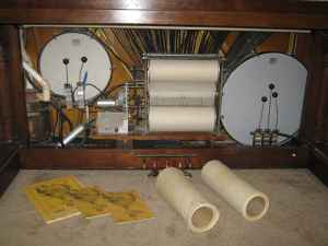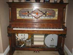 Yes Fishwaltz,it's the one you are thinking about..The guy want's an offer i have no clue what to offer do you?..A side note years ago-{1992}- a guy came into the shop and needed a small bass drum and snare re-paired new head's and some lug's if i recall right the snare was like a 13"x4'' and the bass was like 16"x8" in W.M.P. they were sSlingerland radio king drum's to make a long story short i ask him if he had other drum's for this set,he told me No these drum's went into a player piano...Mikey