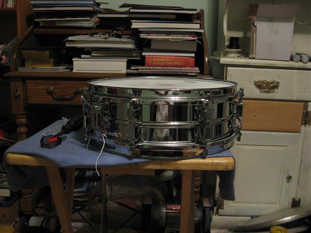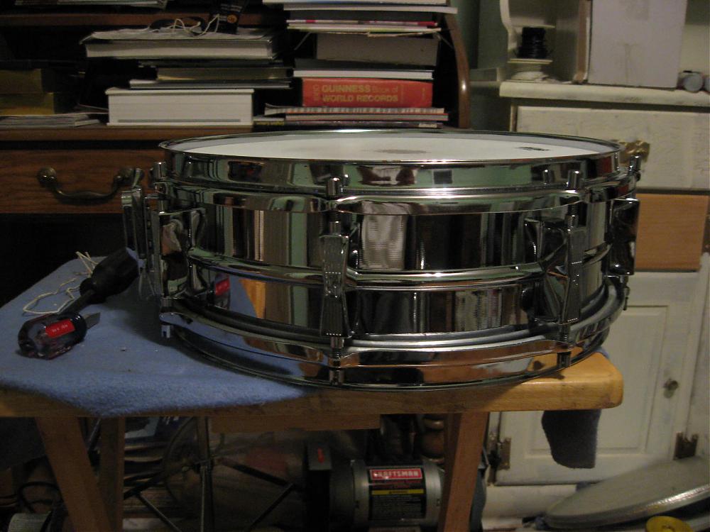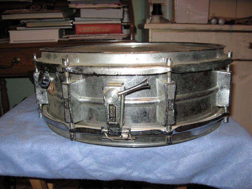I'm hoping to get some help on this Sonor D454 I've had for about 20 years. It was left in my driveway with some other CB700 shells and I've never done anything with it until recently. I gave it a full disassembly and cleaning and it came out pretty nice. I do want to sell it and there isn't much to go on to determine an asking price. I know this isn't a high end holy grail by any means but was hoping I could get some info on its history and today's value. I did check out the Sonor Museum and got an approximate age for it but through deep google searches there isn't much to go on. It's missing the original muffler. It had an MIJ muffler on there that was probably for a 6.5 X 14 so I just left it off since the knob was crooked unless the muffler was about an inch above the bearing edge. There is a t-bolt for the butt side snare tensioner where I believe a knob should be. I also think it's missing a band spring that goes over the butt side tensioner. Any help and info would be greatly appreciated. It's pretty obvious but here is a before pic and some after pics. I did learn the hard way that you shouldn't try to clean the Sonor stickers. I ruined one and almost ruined the other.