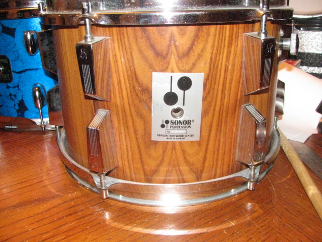 I have a guy wanting a vintage Ludwig Kit and has a Sonor jazz kit to trade. The sizes are 12-14-18. They have a natural finish and the badge says "genuine Rosewood Veneer" They have slotted tension rods and are heavy as hell. I took a few pics of the tom. Does anyone know anything about this kit?