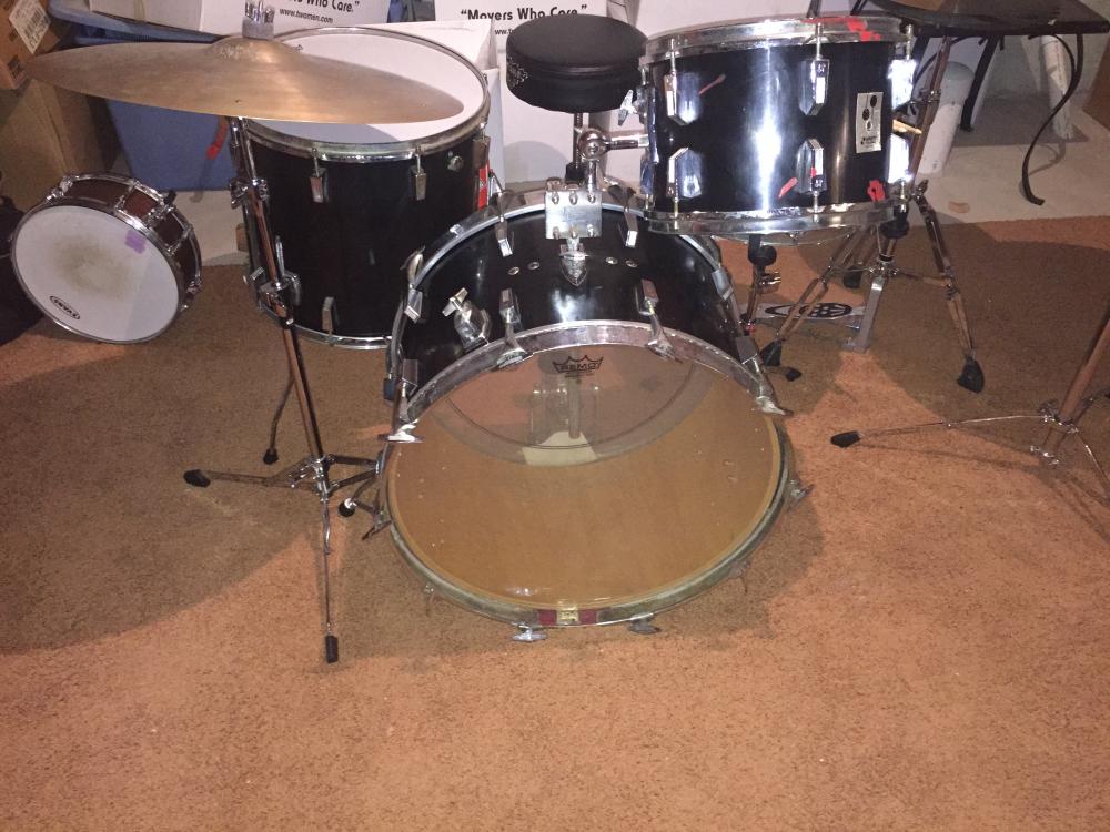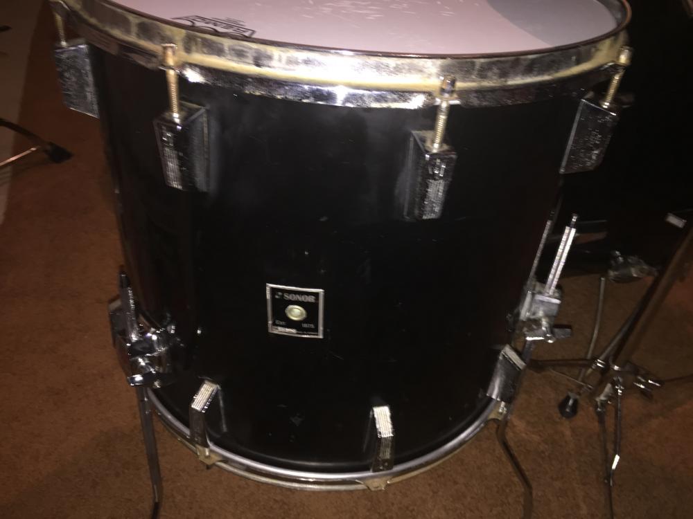 SOLD! This is a late 70's three piece Phonic in an original black wrap. 14x24, 16x18, 9x13. The wrap is sound but has some nicks, bumps and bruises. The tom has a different style badge but I was told that the kit was bought together during the transition years of the 70's. Floor tom does not have original legs or leg brackets. It does have the original tom mounting hardware. The resonant side drum hoop is rough but functional. Someone spilled a couple of red paint drops on the rack tom. I can't even imagine how. It does come off but was harder that expected so I left it as a battle scar. Three tension rods are missing from the bottom of the floor tom. I see the tension rods on ebay but don't know which ones to get. The shells are in amazing condition. The insides are nearly flawless. You can tell that these were built with love (or stern German discipline). These drum sound amazing. Would prefer to sell locally, but St. Louis is not a Sonor town. Call Vern at 314-650-6425. I will trade as well.