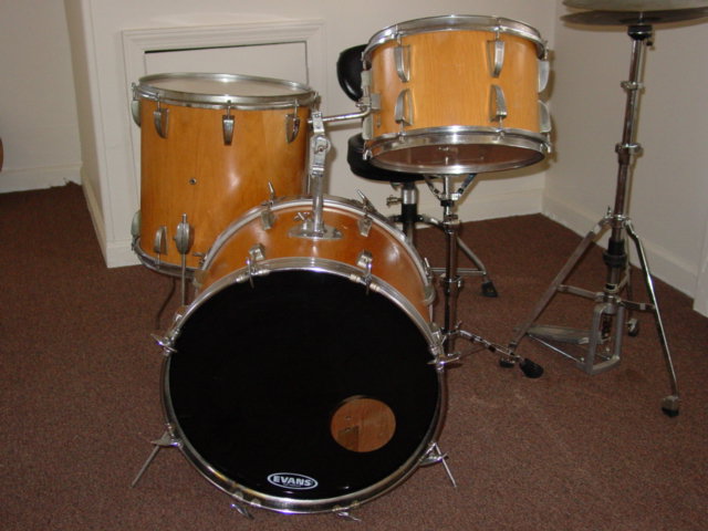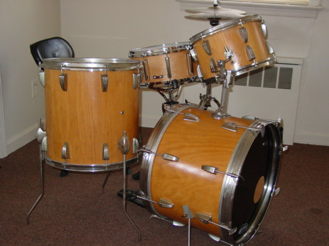 I have this sonor swinger set of mine and i am debating if i should restore or sell?? everyone tells me that the swingers were sonors entry level kit and not sure if they are worth restoring?? But the fact remains that these are the same famous 6 ply beechwood shells with the roundover edges that sonor is famous for,and they do sound nice!! nice vintage tone!! The person who had them before me stripped off the wrap and refinished them in the natural beechwood.Sonar swingers did not come in a natural wood finish,but to me it looks alot better(almost that european-scandanavian look?) than the wrap!And all I would probably have to do is give then a light sand and a light coat of whatever clear i wanted,because they look pretty good as it is! I am at the point now though,if i bought the wrap and rewrapped it myself,replaced some of the lugs(for cosmetics only) i would be at the point where i could probably sell them for what i would have into them at that point.I am posting some photos of the kit in its uncleaned-unfinished condition,so i can get some opinions from you guys!(dont mind the snare! its a pearl masters mmx maple shell and is the best sounding snare if have ever head in my life!) So here they are,what do you think???