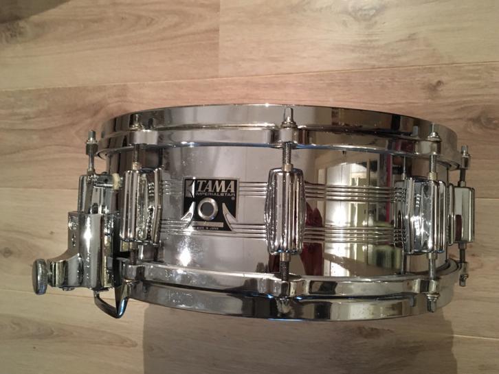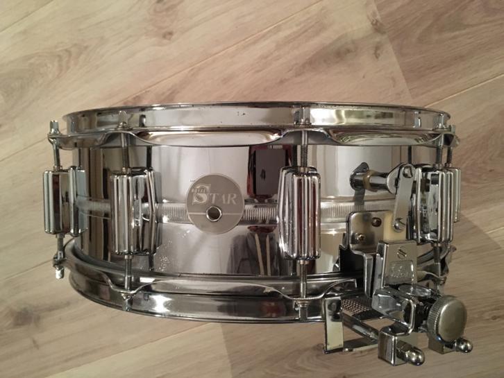 4. Tama KB 5x14 (53xxx) transition era. Star shell and mechanism with triple flange hoops, all original. New Evans heads top and bottom. In really good condition.