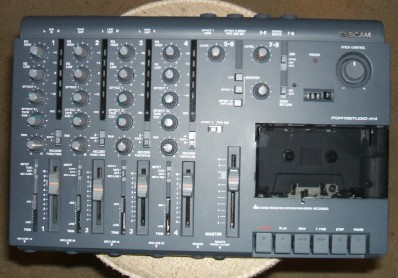The 414 was Tascam’s middle of the road cassette based Portastudio. With its 4 separate direct channels it’s really great for recording drums.