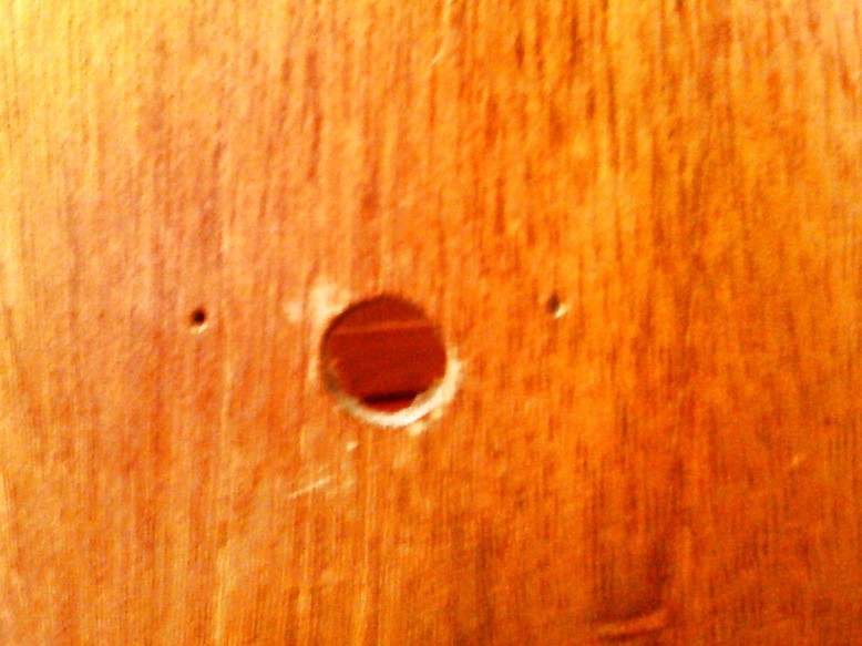 Thankx for the info- the spade style tom mounts say 'Made in Japan' but no other markings are on the drums- no badges but a nail hole evenly spaced on each side of the vent....yeah Buckie they do look like Gretsch knock offs- and I'll look up Trixon to see how close they ripped the design off! here is a vent hole and what is left of the dampener (2 like this):