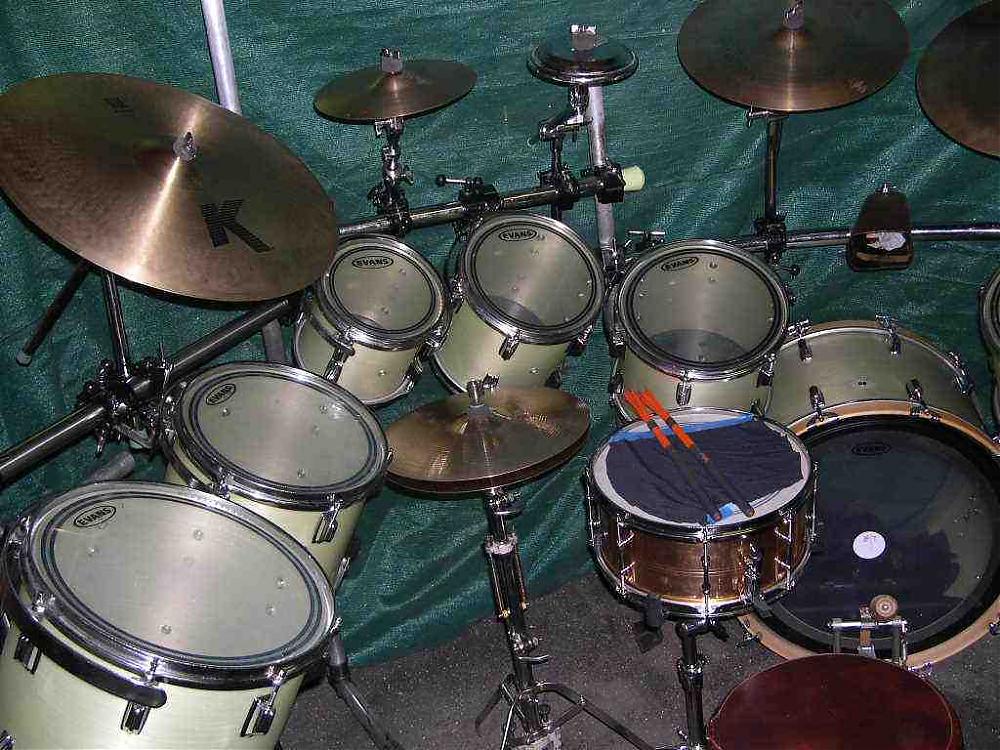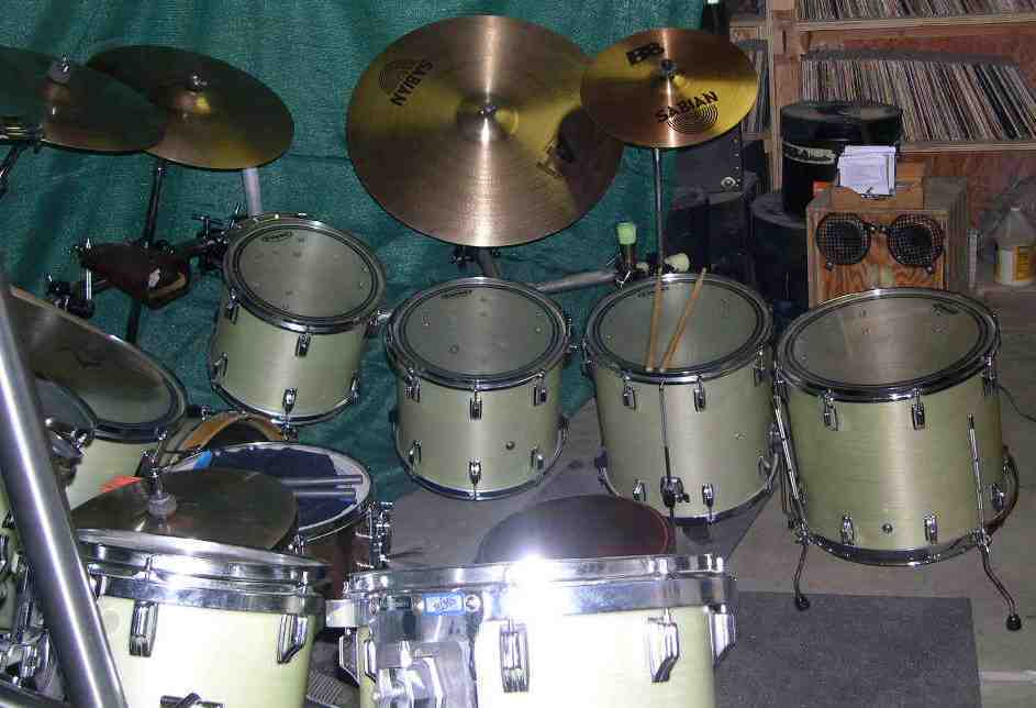 That is one beautiful and really impressive set of drums. One of a kind for sure. Man, there's at least two whole kits in there! Honest, I've been playing for 50 years and I wouldn't know what to do with all those drums around me. I'm a one-up, two down player, any more drums than that and I just get lost or confused. That's an amazing kit and you have my respect as a drummer just for being able to play something that elaborate. Cool1