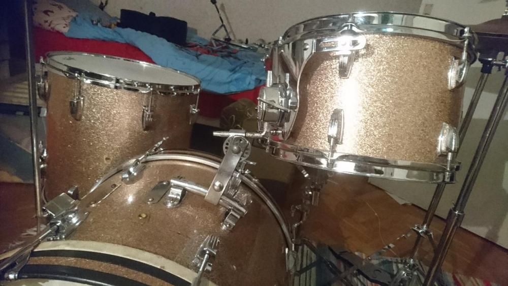 April 2nd 1969 scarfed pink champagne holly wood and 65/66 downbeat snare, and , supra same year very minty kit old pies