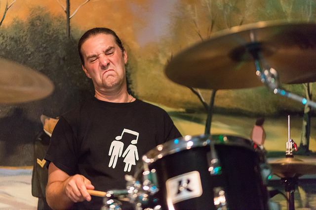 I don't think I'm the only drummer who does this, but I never really notice this face on many of my fellow drumming friends when they play. But I always seem to have at least one photo from every show ( going back to my first ) where I just have the nastiest looking face, and I'm never mad at anything. I guess I get so into it that this happens....LOL