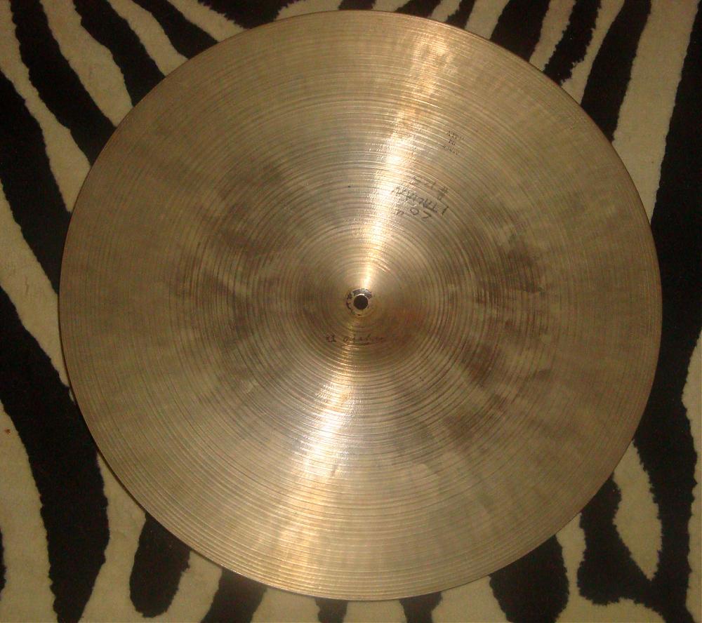 How could you claim that you have a Complete 60's Gretsch set if its missing the AJAHA ride? Well, for you guys inmense pleasure heres this almost 20" (19 and 3 1/6) AJAHA Italian Ride. Complex dark tone. small bell, Classic Italian "umbrela" profile... For some reason they just dont sound like a regular UFIP...theres some underlying undertones there...The rotocasting looks the same as the Pistoia made pies but I think the hammering on these are just not the same ...and you can tell, and hear...
