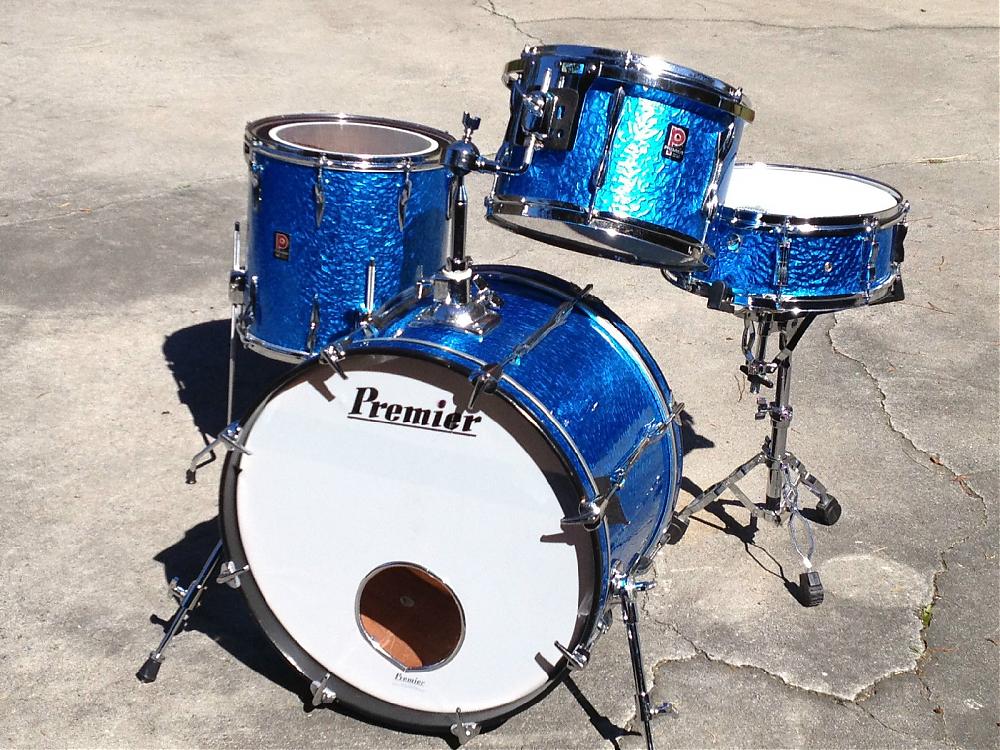 It's a rewrapped and probably pieced together kit but the Ludwig snare and the rare 14" FT are worth the $$ http://www.ebay.com/itm/Premier-four-piece-drum-set-with-Ludwig-Bowtie-Snare-/181278973625?pt=US_Drums&hash=item2a35119eb9