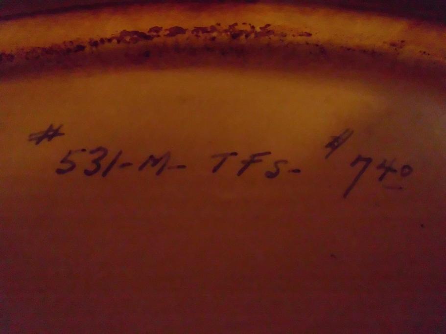 so...still looking for the tension rods and utitlity strainer for the other leedy! the pic with the paint is from the ebay sellers auction. calf head had an inscription on the underside that I took a pic of as well.