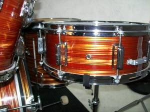 These are NOT Pearl drums from either the 68 or 69 cat. The hardware is wrong for those years. This post is only speaking to the wrap name.
