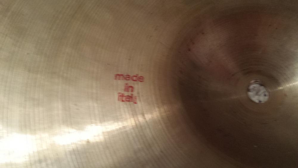 They are Tosco by Sabian, 14", and both say made in Italy on the bottom/inside. I got my first drum set out of my parents' neighbor's trash (no joke) and these came with them.