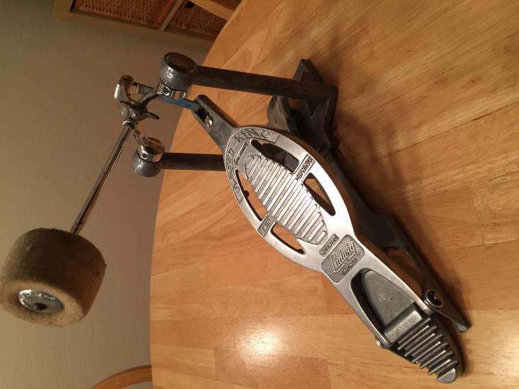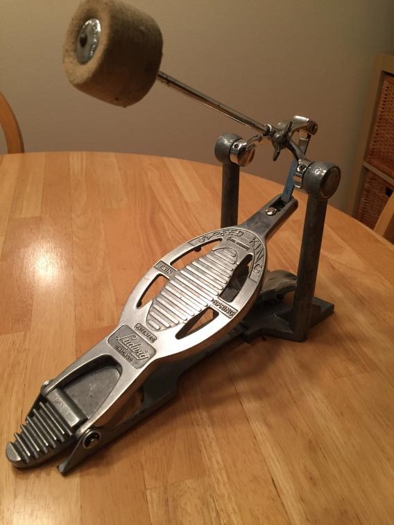 I have a Ludwig SpeedKing pedal that I have rehabbed. It has all original and correct wingbolts. I took apart the spring towers, cleaned out the ancient gunk and replaced with brand new gunk. Bearings cleaned and lubed. I removed the original heel plate hinge, replaced the sleeve bushings with new bronze bushings and created a new hinge pin with steel rod, new washers and locking circlips. The original Ludwig beater is present. I did not repair or replace the partial rubber pad under the pedal. The pedal works great and feels solid.