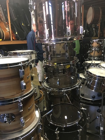 Had a chance to take some pictures of some of the stuff stashed away at Uncle Sam's Pawnshop this past weekend during a visit back to my hometown. Lot's of good stuff and a super friendly staff. They do know what they have but are will to deal a bit on pricing. They don't quote prices on the spot. You have to let them know what you are interested in and they check out sold items on ebay and get back to you. Some cool stuff on hand. Rick is the name of the guy in charge of the drums.