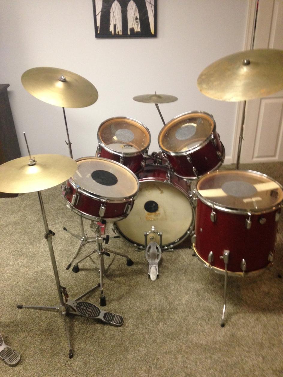 Just another side note. Those red drums appear to be in quite good condition. Those were made on or before 1967 and those thin shells with the reinforcement rings are quite popular among those who prefer those (like myself). They tend to sound a little different, more resonant, and prefer lower tunings. Therefore, some prefer those opposed to the newer ones. It does not change the value monetarily, but some drummers consider them to be more valuable (to them....if that makes sense). If you were to sell those, I would recommend to sell those to someone here on the forum who will really know about them, will know how to tune them to get the best sound out of them, and will appreciate them much more than your average person just looking for a drumset. They are starting to come back onto the collectors' radar and the vintage MIJ segment of the vintage drum market is starting to gain traction (certainly in the last 5 years). While those remain to have a lower selling price, they are becoming more and more difficult to find.