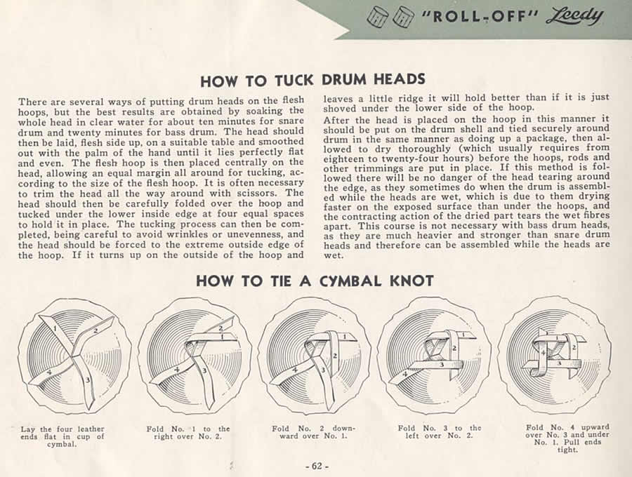 I tried my 1st tuck job for heads for this John Grey drum I'm making. I researched & read everything I could find about head tucking with a Google search, and ordered some untucked calf skins (4" larger diameter than the drum size). I had some old unusable oversized calf heads laying around & soaked them to get the flesh hoops to use; then I cut a section out of each to make the hoops the correct size for the drum. Sorry I didn't take pictures of the rabbit joint (I think that's what the step cut is called) I cut & glued together, rather than a scarf joint. Then I made a 'tucking tool with a large conduit strap & paint brush handle (I'll get a picture of this thing this weekend). Anyway, I started by soaking (in cold wated) the skins for 20 - 30 minutes & laid the hoop on the skin & began tucking at the 12:00 position, 3:00, 6:00 and 9:00. Then, wishing I had at least 2 more hands, it was basically a free for all trying to tuck in between tose spots while the original tucks would come undone. Eventually, I got it tucked all the way around, sloppy, and with many 'folds' which I smoothed out as good as possible. Then I mounted it loosely on the drum with the single flanged hoops & snare clips (or claws). As it dried for the next few days, it ended up looking just like a calfskin head. I'd hear it snap, crackle & pop now & then as it dried, & I tightened the tension rods just enought to make the ridge on the bearing edge form. So I ended up with some 'new' calfsin heads - the folds shrunk & smoothed out pretty much, and some are still there, but my mission accomplished! I'll try to add some pics to this thread in the next couple days.