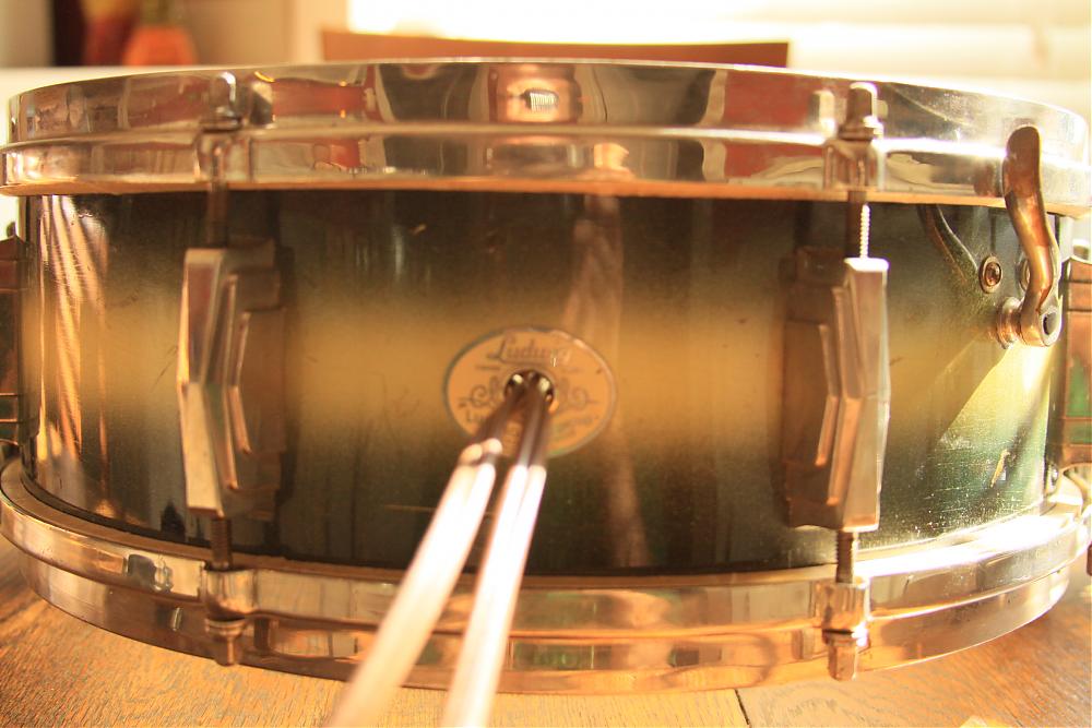 i aquired yesterday three vintage snares from a retiring professor, one of them is a ludwig from before ww2. from my research the only drum that i've seen that looks anything like this is the silver anniversary edition. now saying that i don't claim it is one, though i do think this is a 1936 edition with some special order duco on it. inside the shell is stamped 3612 in big blue ink. any help is appriciated.