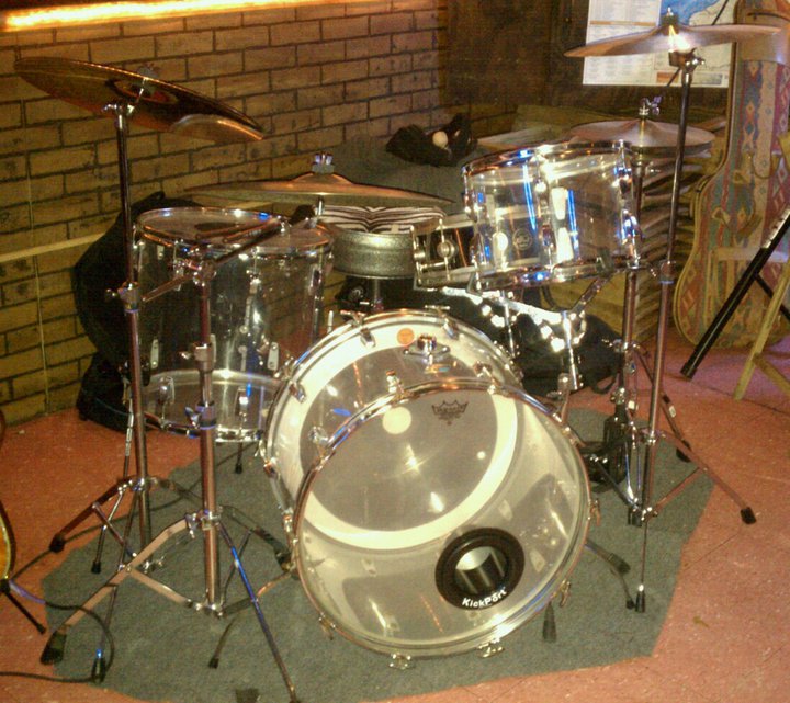 I'm thinking about buying a clear vistalite from an acquaintance of mine. It has a 12,13,16, and 22, and includes a chrome snare. It was probably from mid to late 70's according to his estimates. Some of the hardware has been replaced, the floor tom legs and leg mounts aren't original, they're ddrum or gibralter or something, also there is a crack in the 12' tom. They have the usual scuffs and nicks but nothing out out of the ordinary. Also two of the tom hoops have been replaced because of excessive pitting. There is a little pitting on some of the other chrome as well.