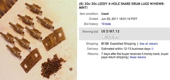 Here's the previous sale - from June. Not sure what I will do with my lugs/drum, but this looks like another nice ebay score!