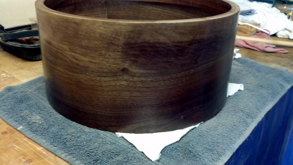 I received the pictures, and was shocked. the varying thickness of the shell walls is easy to see, even on the pics. Any Drumbuilder knows how bad that is for sound and resonance. The holes in the shells (especially the bass drum) were filled up with putty!!@#$# A big gab where the drum - halves join, and lots of cracks, not just surface cracks, deep ones, running across the shells and down the seams. The outside of the shells was scratched, dinged up and the opposite of smooth, what i expected from the pictures on Vaughncraft.com. I told John several times, I won't accept cracked shells, he responded "of course not, everything is great looking"