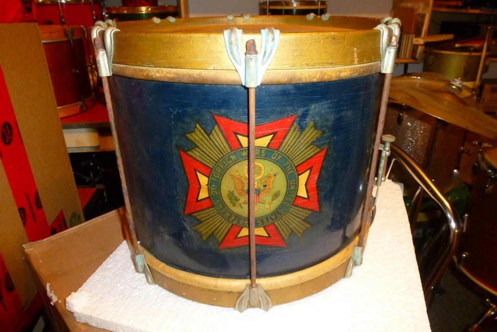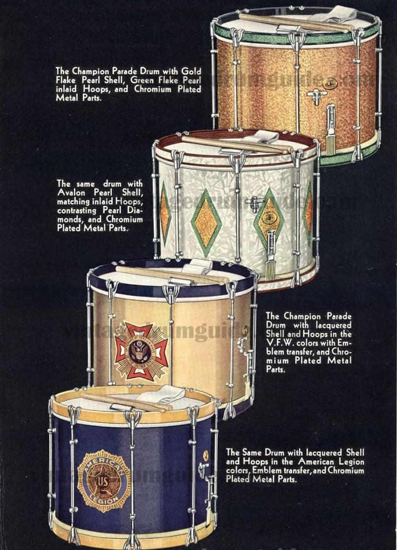 This arrived in the mail today - a nice little parade drum. Best guess so far is that it's late 30's going by the Strainer and then by the Transparent Crown-Head calfhide resonant head.....which appears to probably be original to the drum. I haven't compared the t-rod claws to any photos yet. Anyone here know or want to guess roughly what year the drum is going by the t-rod claws. strainer and anything else you can see?