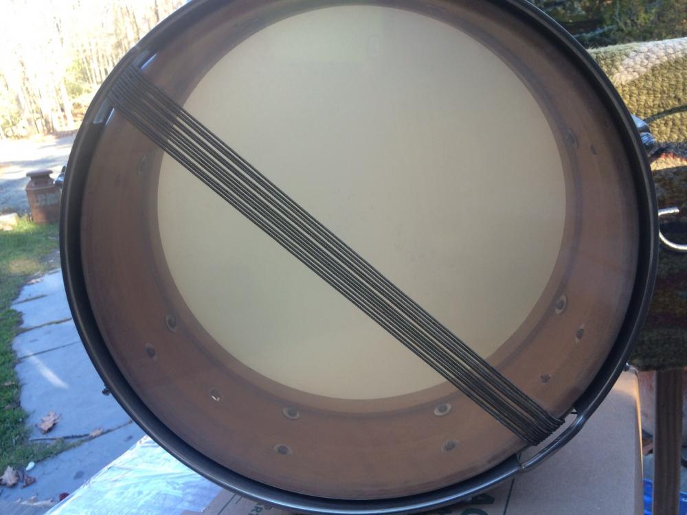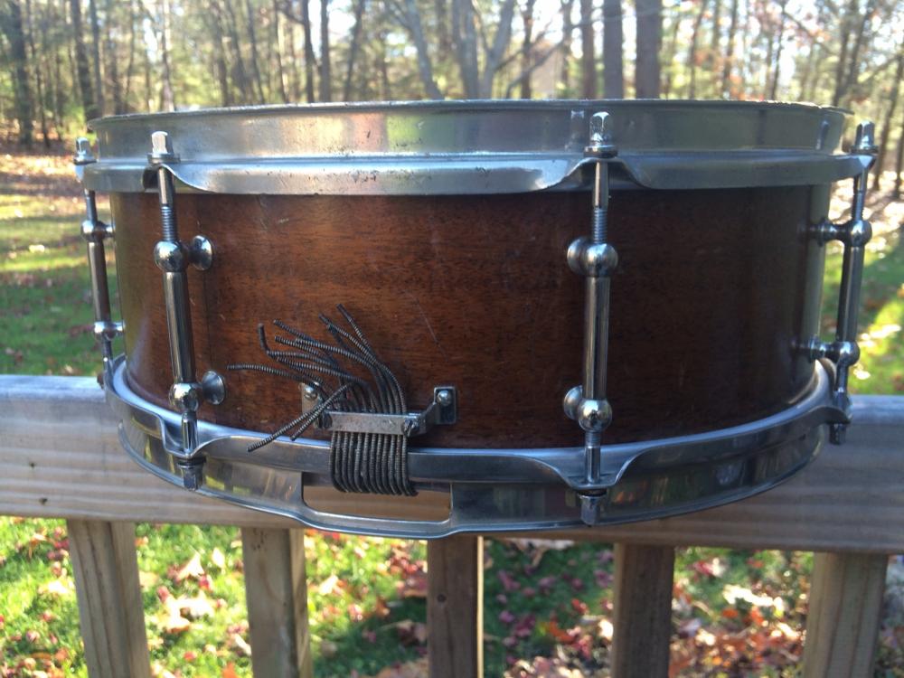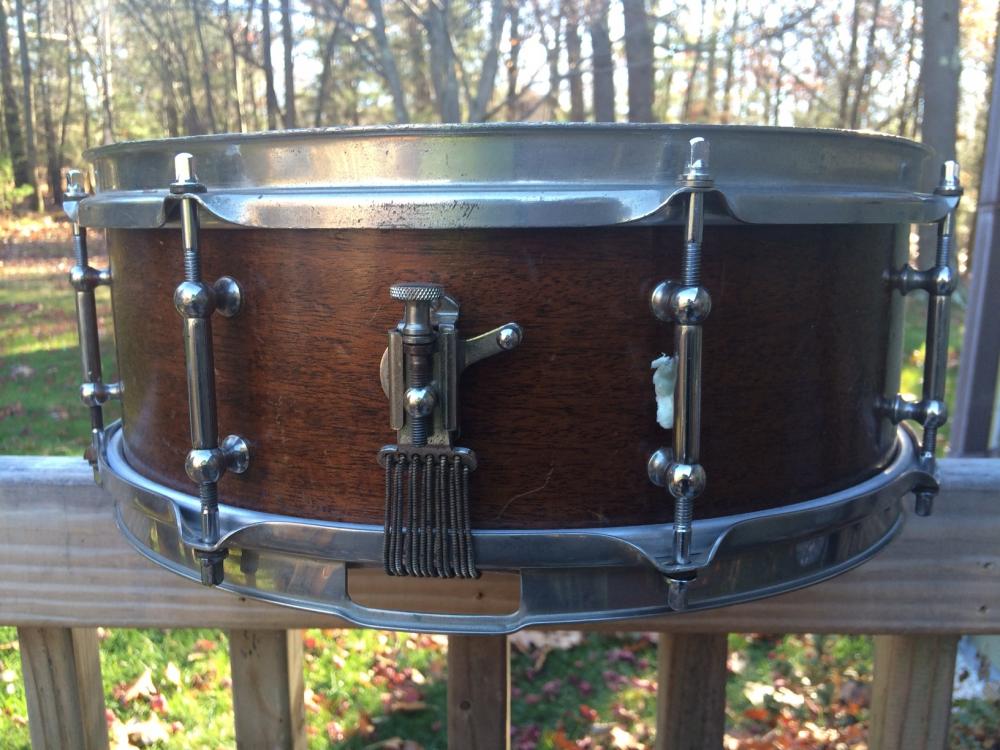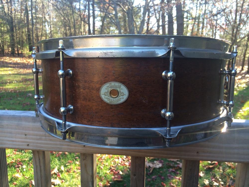 vintage 1940's White Enamel Badge Ludwig 5" x 14" 8 tube-lug snare drum.