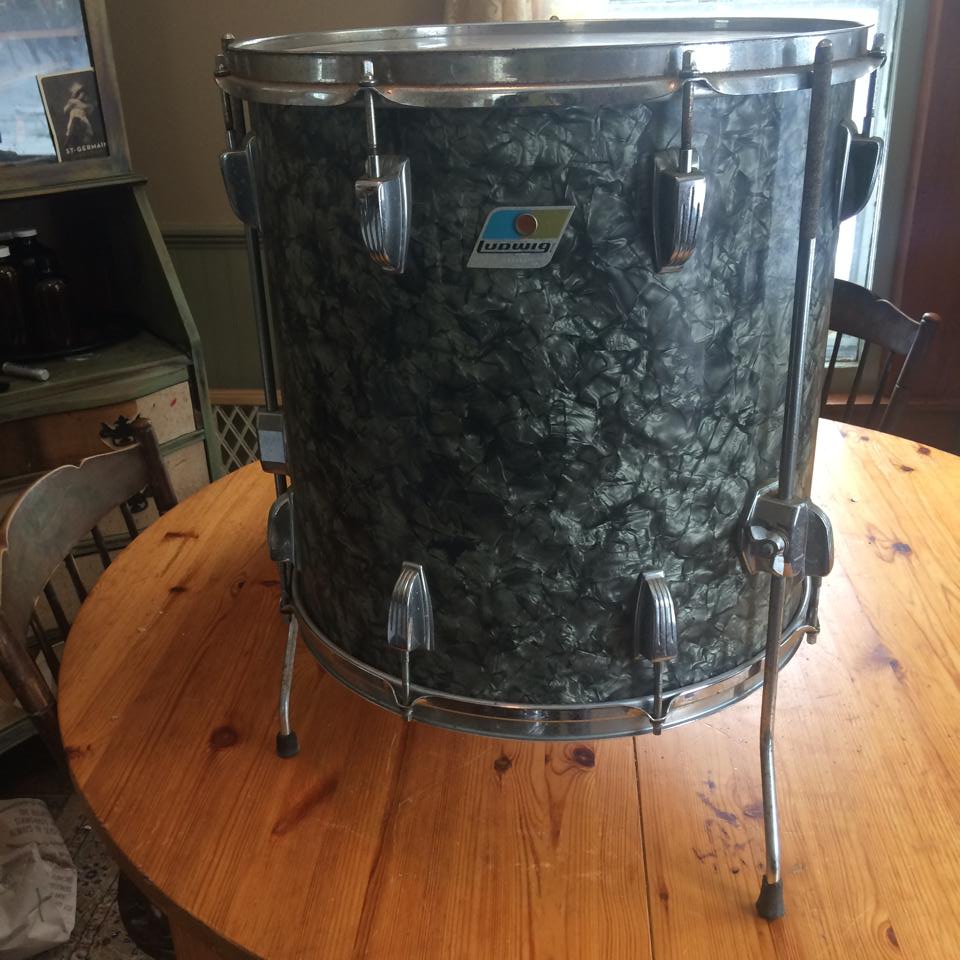 vintage 70's Ludwig B/O badge 16"x16" floor tom in Black Diamond wrap. drum is in good shape, shell has no extra holes or mods and complete hardware down to the FT legs. i did not bother to clean the drum, i will leave that privilege to its new owner. im sure it will shine up beautifully once cleaned, and above all, the drum sounds great!