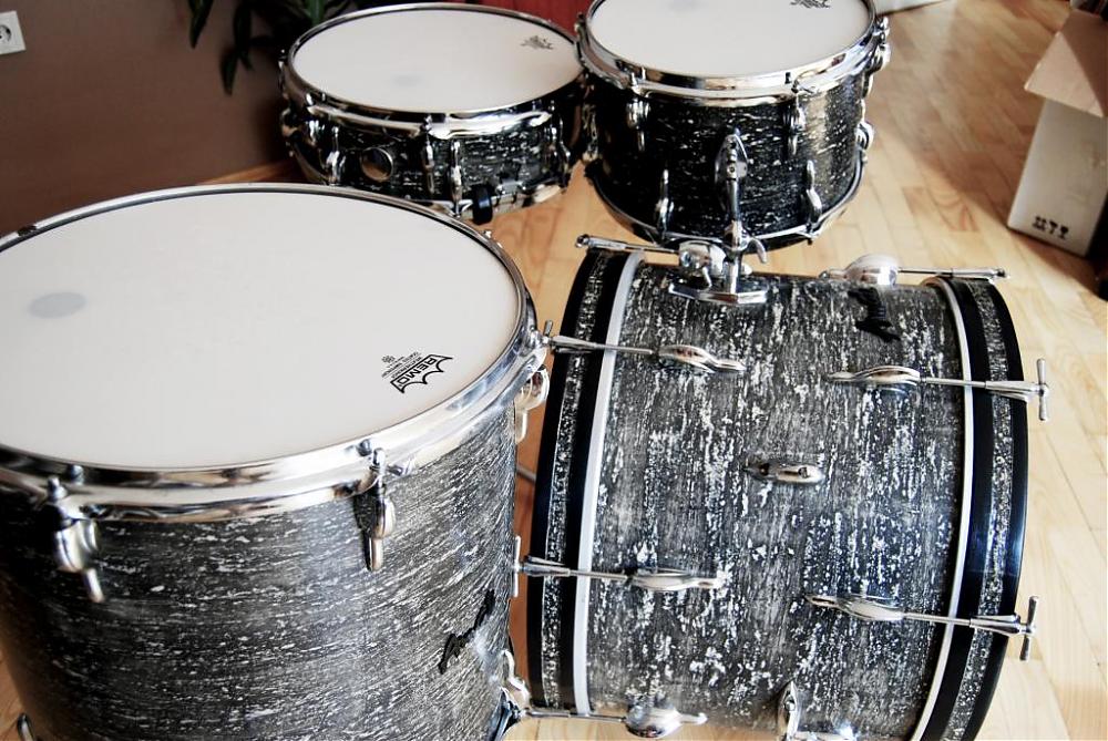 as soon as I see those intuitive incurved hoops on European drums, I get mellow. sweet looking kit. ---good choice in the Premier flat based stand. ...and another interesting European wrap, too.