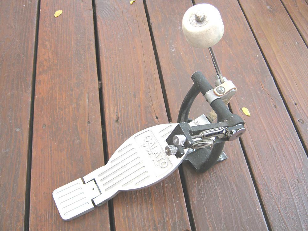 Selling a rare vintage Calato (yes the Regal Tip company) bass drum pedal. I believe this one is an early one due to the strap drive, rather than the chain drive the later ones had on the spring mechanism. So, I'd place it late 70's?