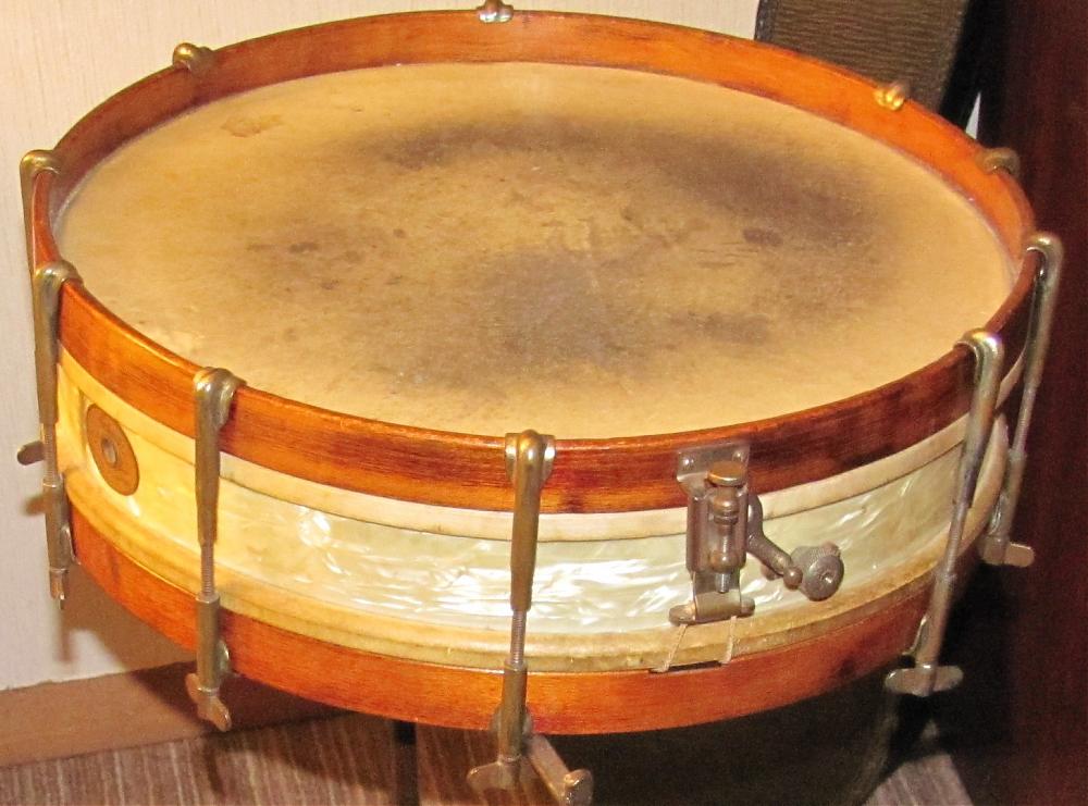 I have posted a few pictures in the past on my vintage Ludwig snare drum, and the rest of my set. I have a Ludwig snare drum that dates from the 1920's with a mother of pearl wrap, that could have been added at a later date, but was never specified. I also have a Slingerland tom drum, and a zlidjian cymbal that dates from the 40's-50's. I am interested in selling the set, so any interested buyers are free to contact me at any time, with any questions about the set. I am currently entertaining any serious offers. Thank you!