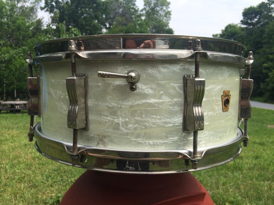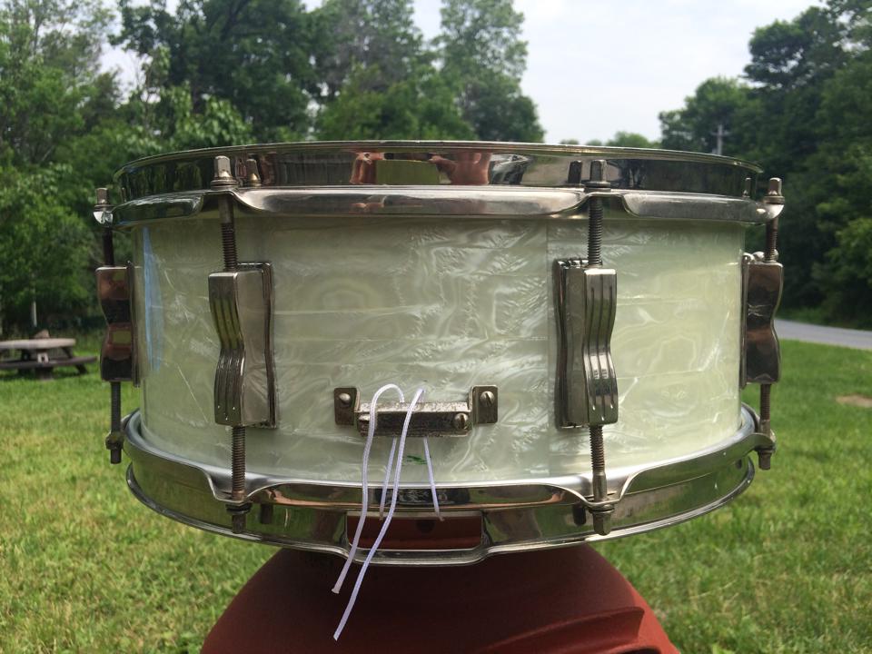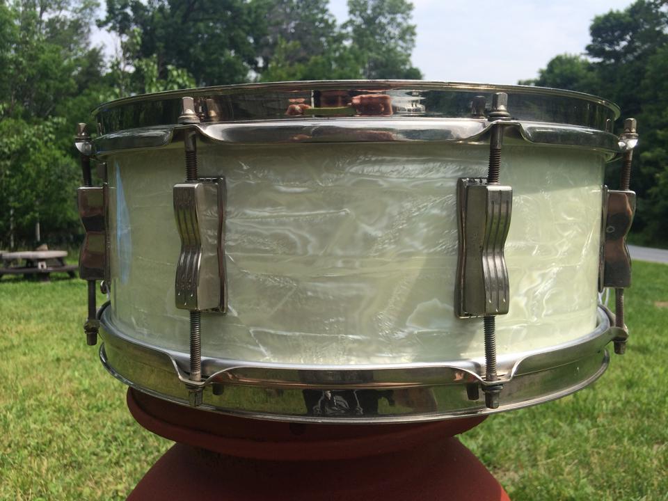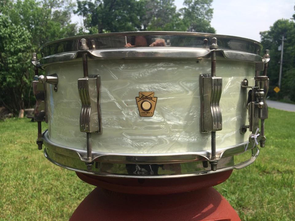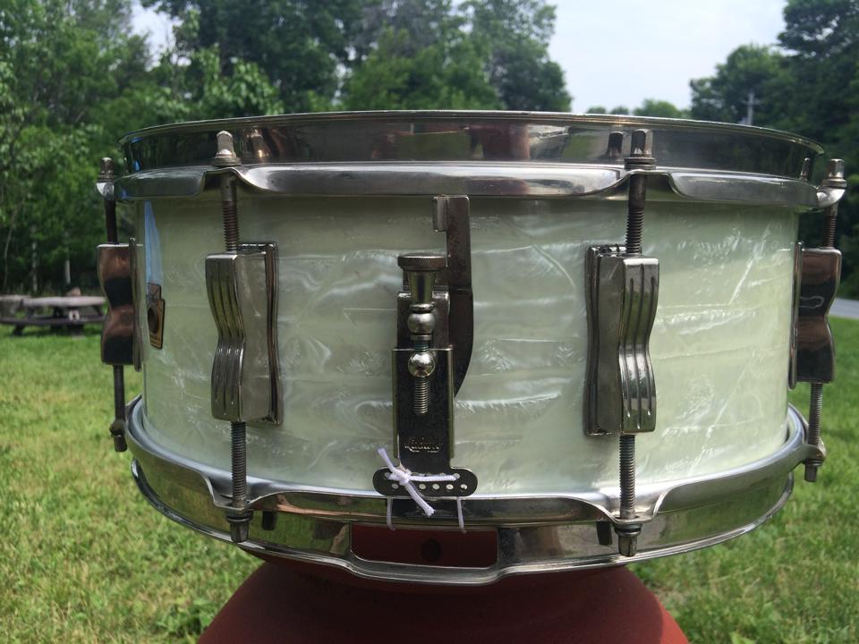 Vintage early 60's Ludwig Pre-Serial Jazz Festival Snare Drum in beautiful White Marine Pearl finish!