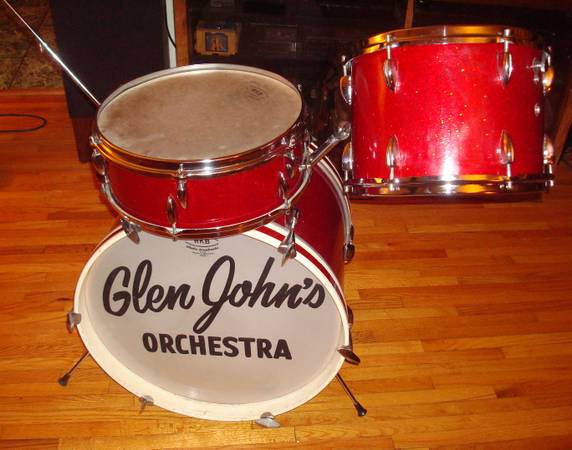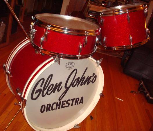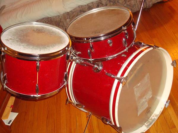 Probably from about '65. These are wrapped in Helrot. There was also a darker red sparkle called Dunkelrot. The drums haven't been used much due to the RKB heads, still being intact. I don't think those were ever sold in N.A., so the heads have not been replaced since the drums arrived here.