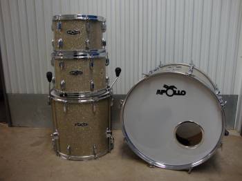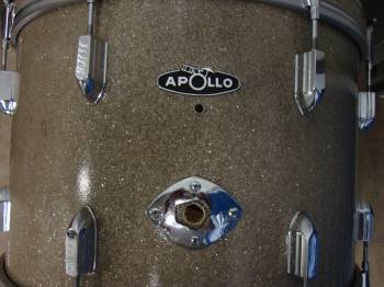 For sale is a vintage Apollo kit in glass glitter with possibly my favorite logo badge of all time! Sizes are 12, 13, 16, 22 and the drums are in near perfect condition. The only real issue is the mounting plate on the top of the kick, and it was that way when I bought the kit. I probably have the tom brackets somewhere, I just have to find them. Shells only. $250 plus shipping. Drums are located in Nashville.