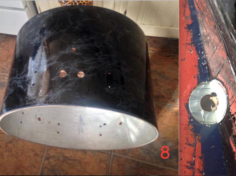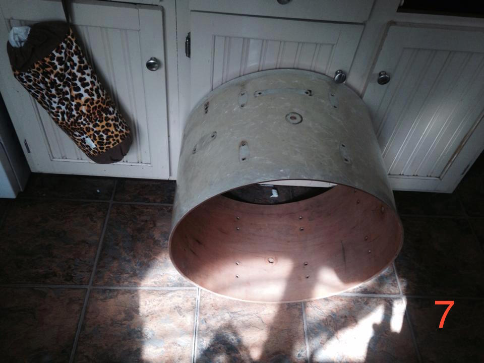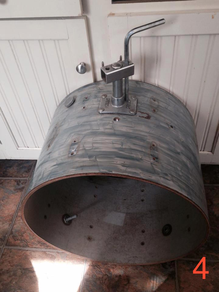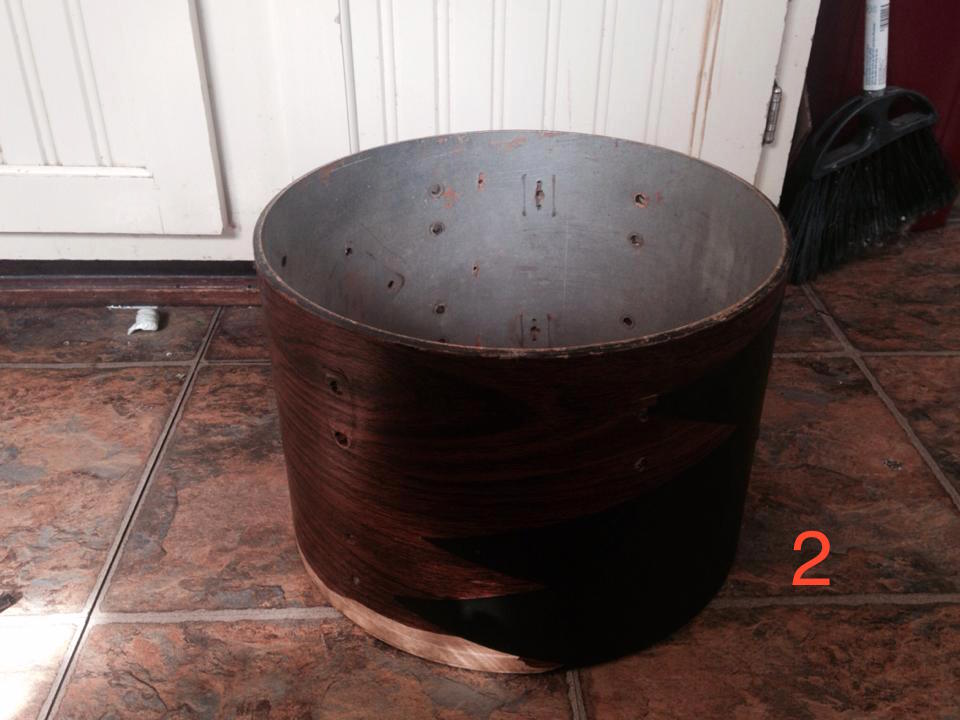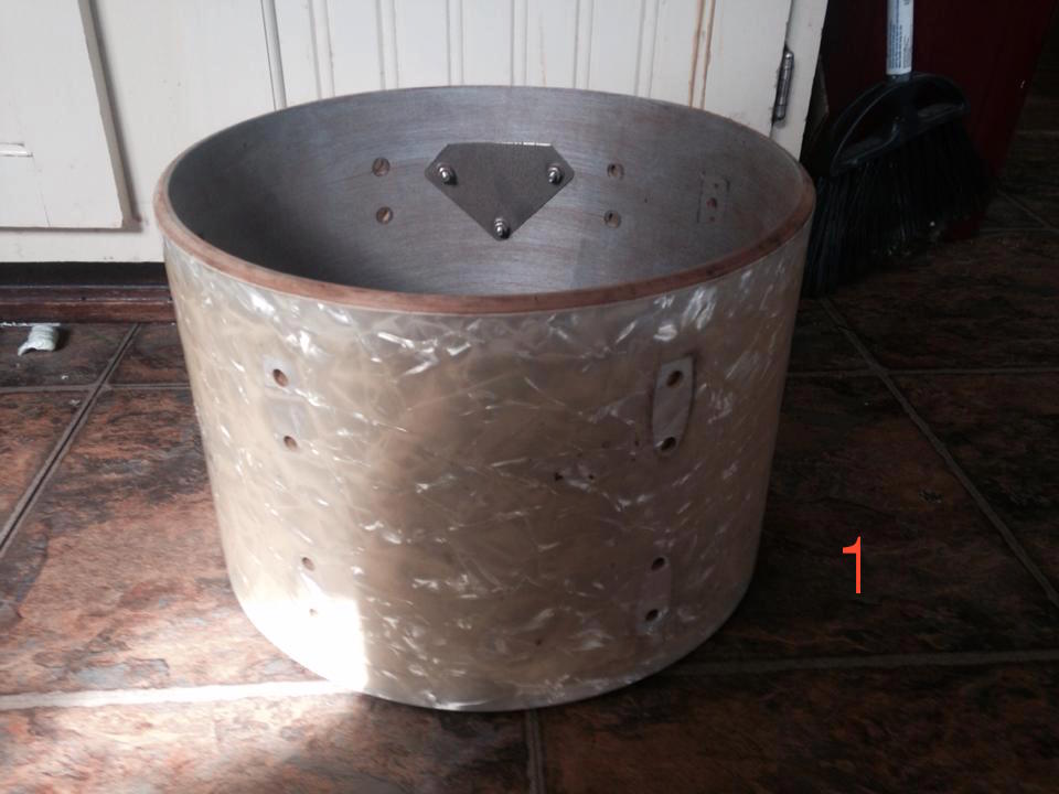 8 - 60's Gretsch 6 ply contact paper rewrap 14" x 22" shell, extra holes from added tom mount - $65 shipped