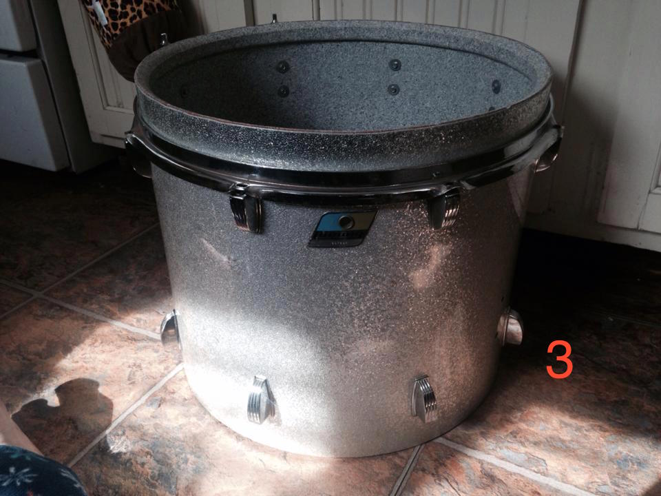 3 - 70's Ludwig 15" x 12" floor tom (looks like concert tom conversion, speckled int, lugs + hoop = $69 shipped