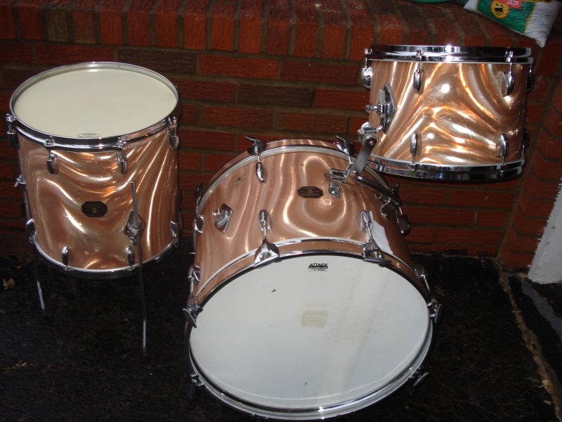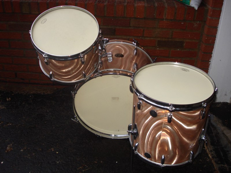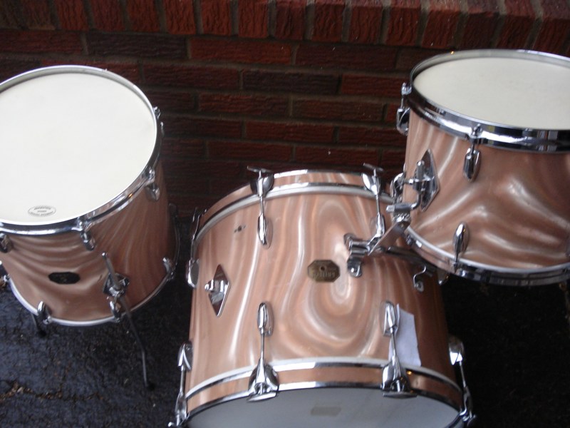 stop sign badge early 70's kit, ALL DRUMS SOUND EXCELLENT! ive been through a bunch of vintage gretsch and honestly, most were dogs on tone, this is one of the nicest sounding ones ive had!