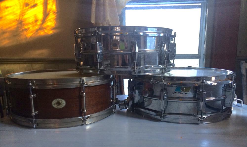 1.) 40's Ludwig White Enamel Badge wood snare - $300 + shipping