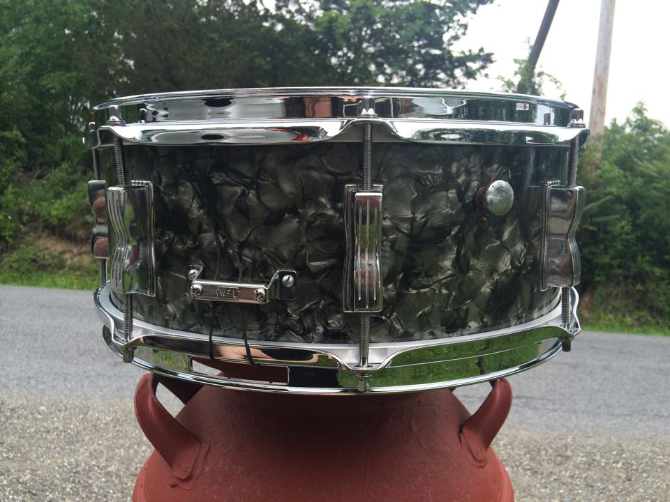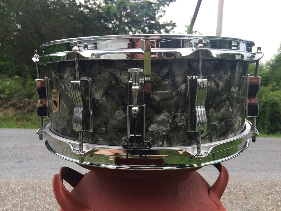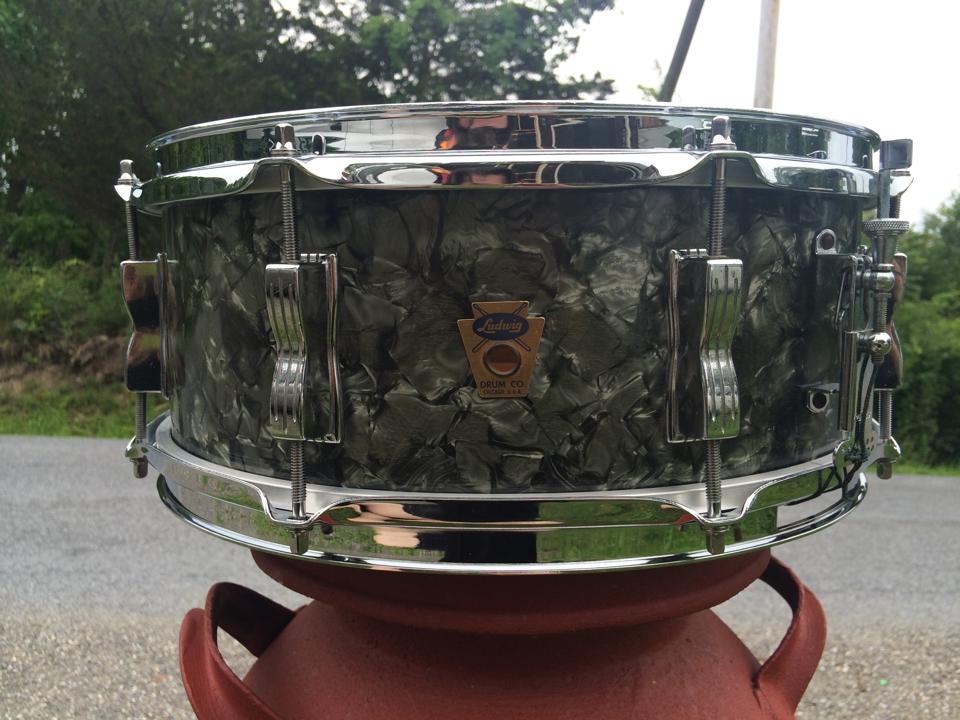 Vintage Ludwig Trans-Badge Jazz Festival snare drum in black diamond pearl!