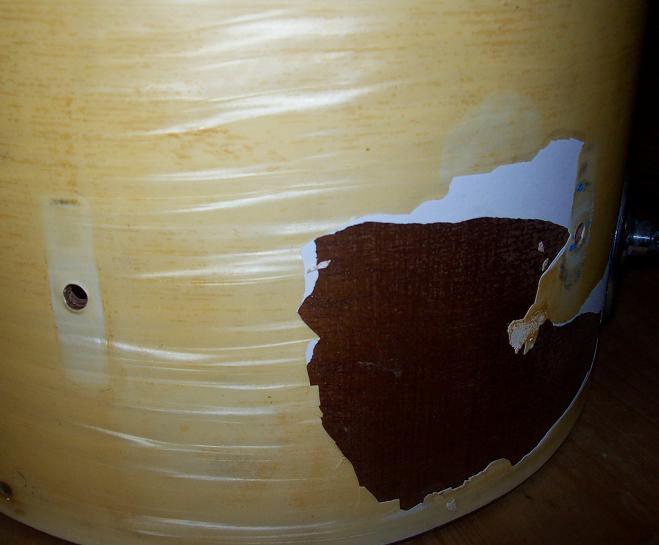 [COLOR="DarkRed"]Someone put contact paper over the original wrap. It's a pain to remove (not the paper itself but the residual glue). if you get lucky, teh wrap beneath will be in good enough shape to restore. It'll be tricky because you will need to use a product which will remove the glue residue from the paper without buggering the original wrap surdface. Nevertheless, Olypic shells were the same as Premier shells, post -1980's...so those are good quality birc=h shells...and most importantly, the original lugs appear intact...which is cool because they were always nifty looking lugs.Keep posting as it progresses...good luck ![/COLOR]
