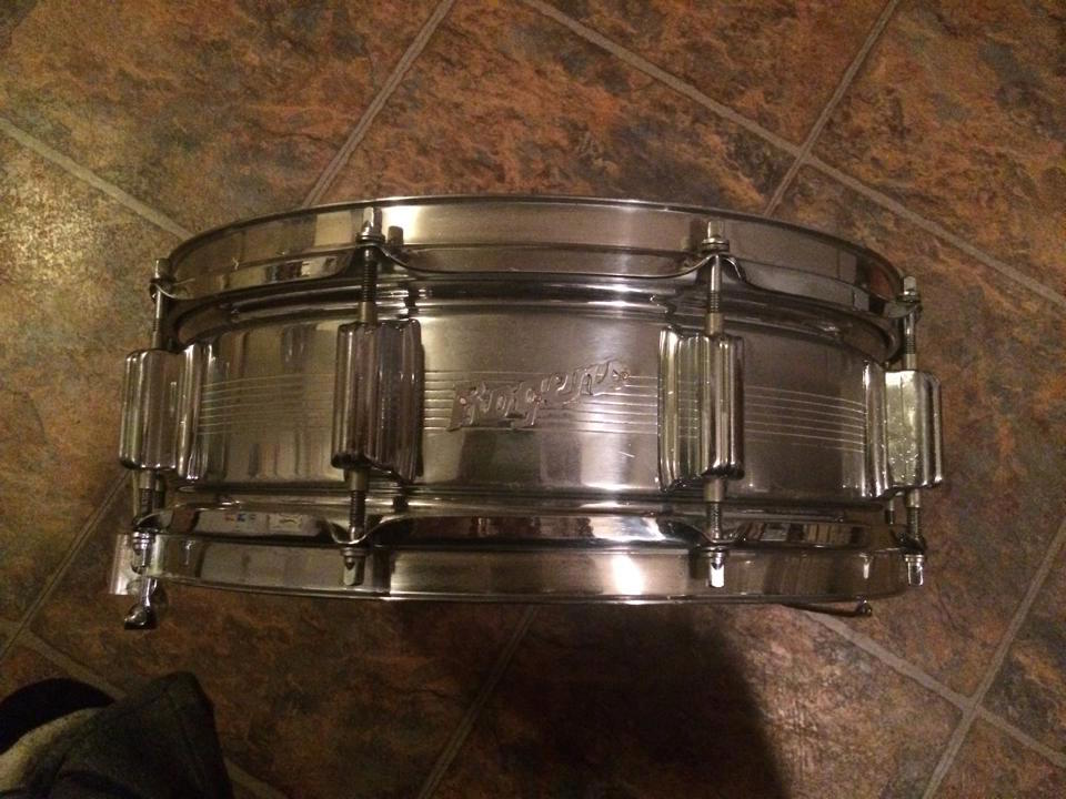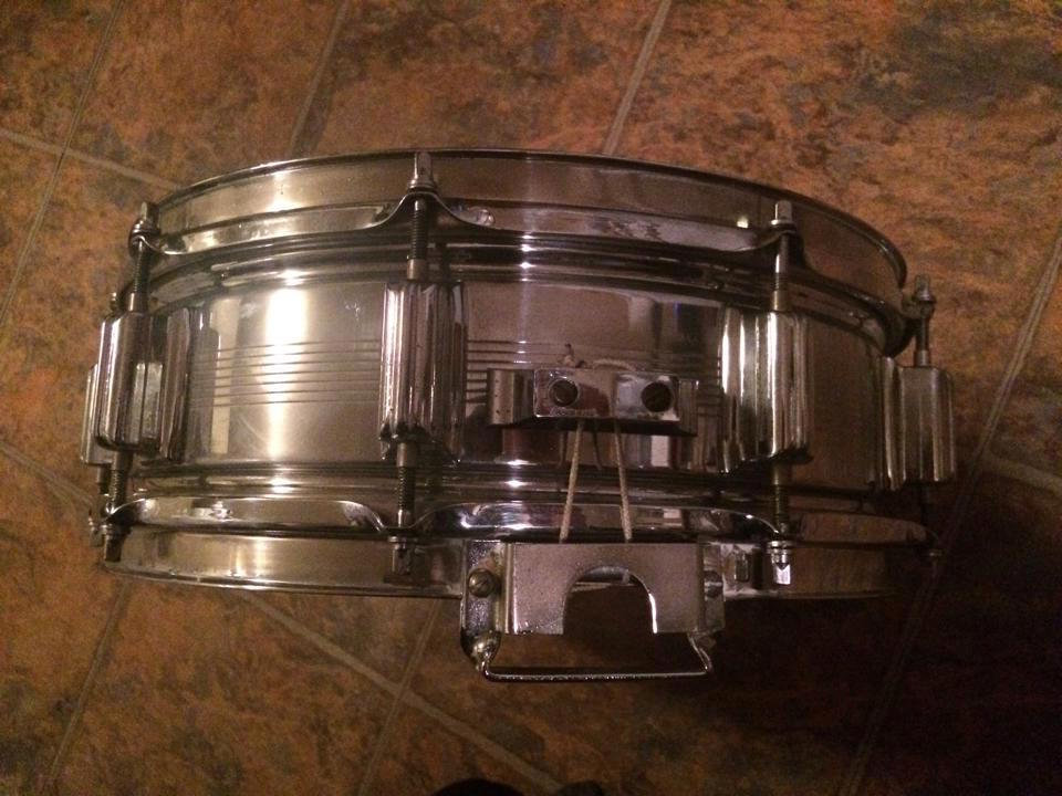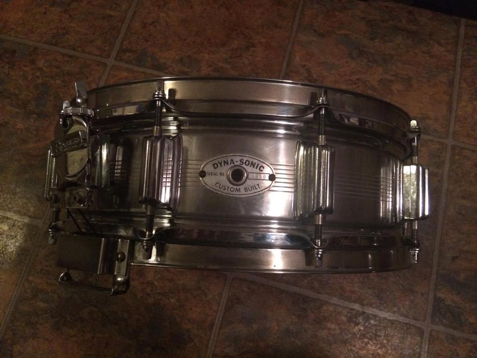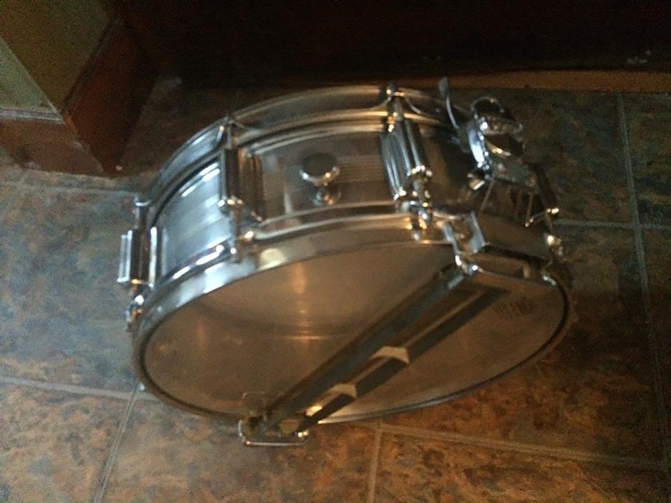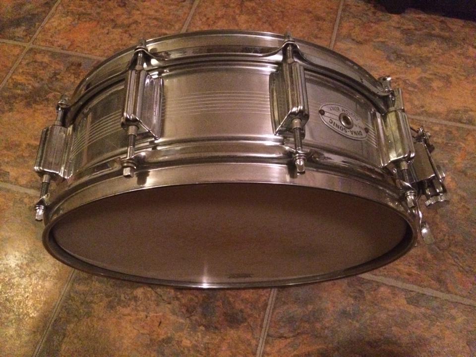Vintage early 60's Rogers Chrome Over Brass shell 7 Line Dynasonic snare drum! Drum is clean and in nice shape, no dents in the shell, no pitting or corrosion. I have to say, it sounds better then any Ludwig Supraphonic or even Gretsch 4160 I've had so far! Super Crisp , dynamic and articulate at all volumes loud or soft. a real Winner!