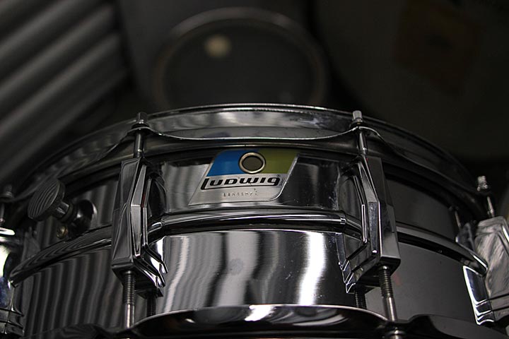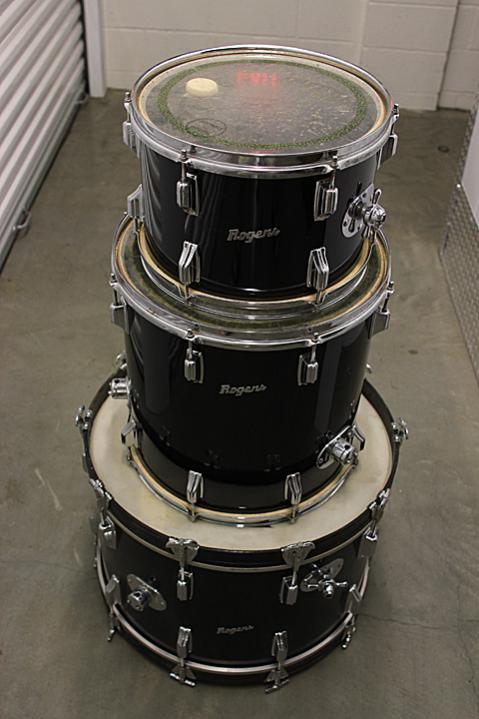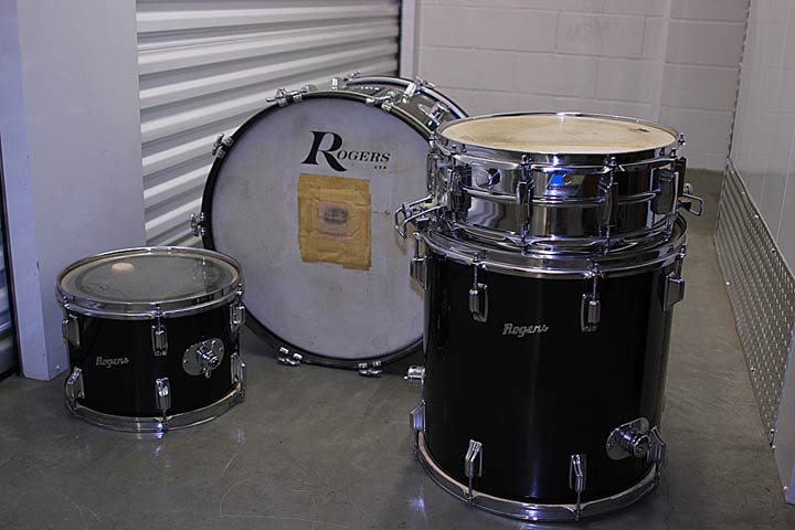 My brother, a life-long drummer, played this Rogers kit with two Ludwig snares (64 Supraphonic with Keystone badge and 76 Supersensitive). Both snares measure 5x14". My brother passed away and left me his drums. They have been stored away inside his house in drum cases for years. I put them in storage because they take up so much room in my apartment.