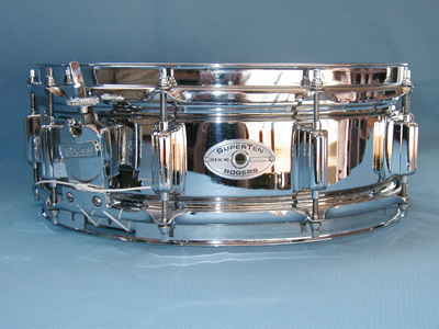 Brett, you know, based on your assessment of your drumming style... ( heavy, 80's rock )... if you were still wanting to play a Rogers snare drum, the one you would want, hands down, is the Rogers SuperTen. This is a STEEL shelled 10 lug drum with a standard Swivo strainer/butt system, and these drums CRANK!!!!!! These can be had "usually" for very low money compared to the Dynasonic's, but they aren't low grade quality in the slightest. Rogers came out with this drum to TRY and compete with the very popular, venerable Ludwig Supraphonic 400. I have a MINT '73 Rogers SuperTen, dual badge including the script logo, and this drum positively SHREDS!!! As a matter of fact, I can't gig with it as it has way to much power for the gigs that I play, yet the drum is incredibly sensitive too. The "problem" is the drum is... LOUD!!!! This drum can easily get out over any band at any volume. The SuperTen never really caught on... ( shame as they will give a Supraphonic 400 a serious run anyday! )... so they can be picked up rather painlessly with regard to price. EVERY Rogers fan/enthusiest/player should have one of these in their playing arsenal!