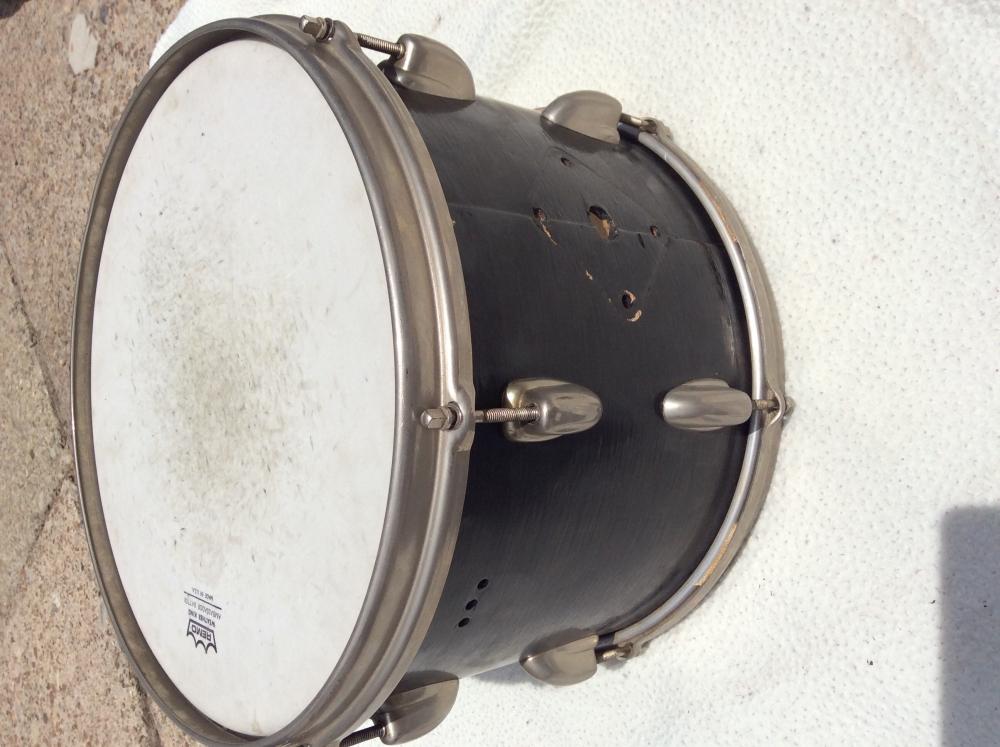 I have for sale this vintage slingerland tom. The wrap was removed and the shell painted. It was drilled for the center hole of the set-o-matic but the mounting holes of the original diamond clip match. I have the the diamond clip and the internal muffler. It has all of the original nickel plated hardware. $85 pickup or you pay shipping from Western New York US 14150.