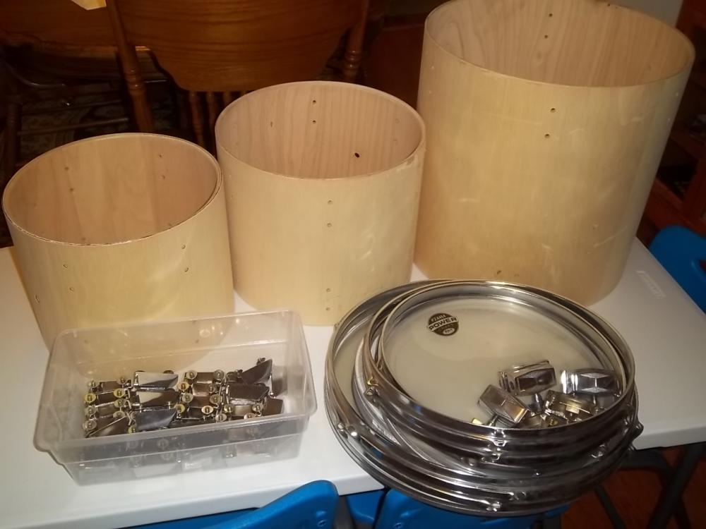 Up for sale is one set of three (3) Vintage Tama Swingstar project toms, consisting of a 16x16 (shell depth by head size in inches) floor tom, and 2 mounted toms (11x13 and 10x12). The drums are used and unassembled without any wrap, but are complete (other than the wrap). The exteriors and interiors are unfinished wood. The hardware is all present and shows signs of normal wear for it's age (some imperfections, scuffs, scratches, pitting, rust etc.). THESE DRUMS ARE NOT MINT COLLECTOR'S PIECES! These drums can be assembled as is and then would be in good working condition. Or, the buyer could wrap the drums or refinish (there are some imperfections in the outer plies which would require some touch up work: PLEASE see pictures!). The shells are of multi-ply construction, and the interiors are unfinished. The hardware included includes: 2-16" 6 hole rims; 2-13" 6 hole rims; 2-12" 6 hole rims; 36 Tama Swingstar lugs; 3 floor tom leg brackets; 2 mounted tom brackets; and 36 tension rods (not pictured). Also included but not pictured are 3 generic floor tom legs. I do not have the original grommets, so have included 3 new ones (screw on version: see pictures!). There are no extra holes in the shells. The heads are used but usable, 4 clear and 2 white. The heads may not look the best but are usable. These came to me in this exact condition (I have not attempted any repairs or cleaning) with a bass drum (already sold and NOT included in this listing) that had a badge which clearly stated "SWINGSTAR by TAMA" with a serial number of "041021" and "MADE IN TAIWAN R.O.C." I believe these drums to have been new in the 1980s.